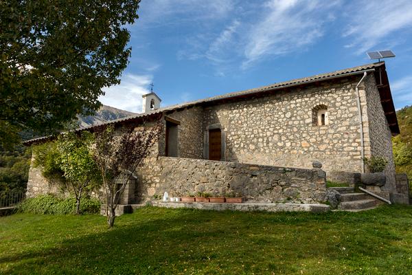 Está construida en mampostería vista, actualmente rejuntada con abundante cemento, y se cubre a dos aguas con uralita, en uno de cuyos extremos hay una pequeña espadaña de un ojo.