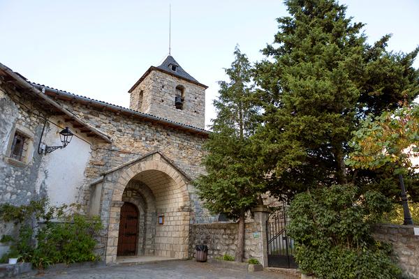 Es un edificio con planta de cruz latina, que consta de una nave con cuatro capillas laterales, un crucero y cabecera recta orientada al este, a la que se adosa una sacristía en cada lado, así como un campanario de planta cuadrada. Está construida en mampostería.