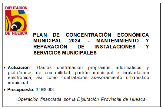 Los gastos de diferentes servicios de gestión necesarios para el Ayuntamiento han sido subvencionados por la Diputación Provincial de Huesca